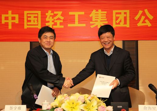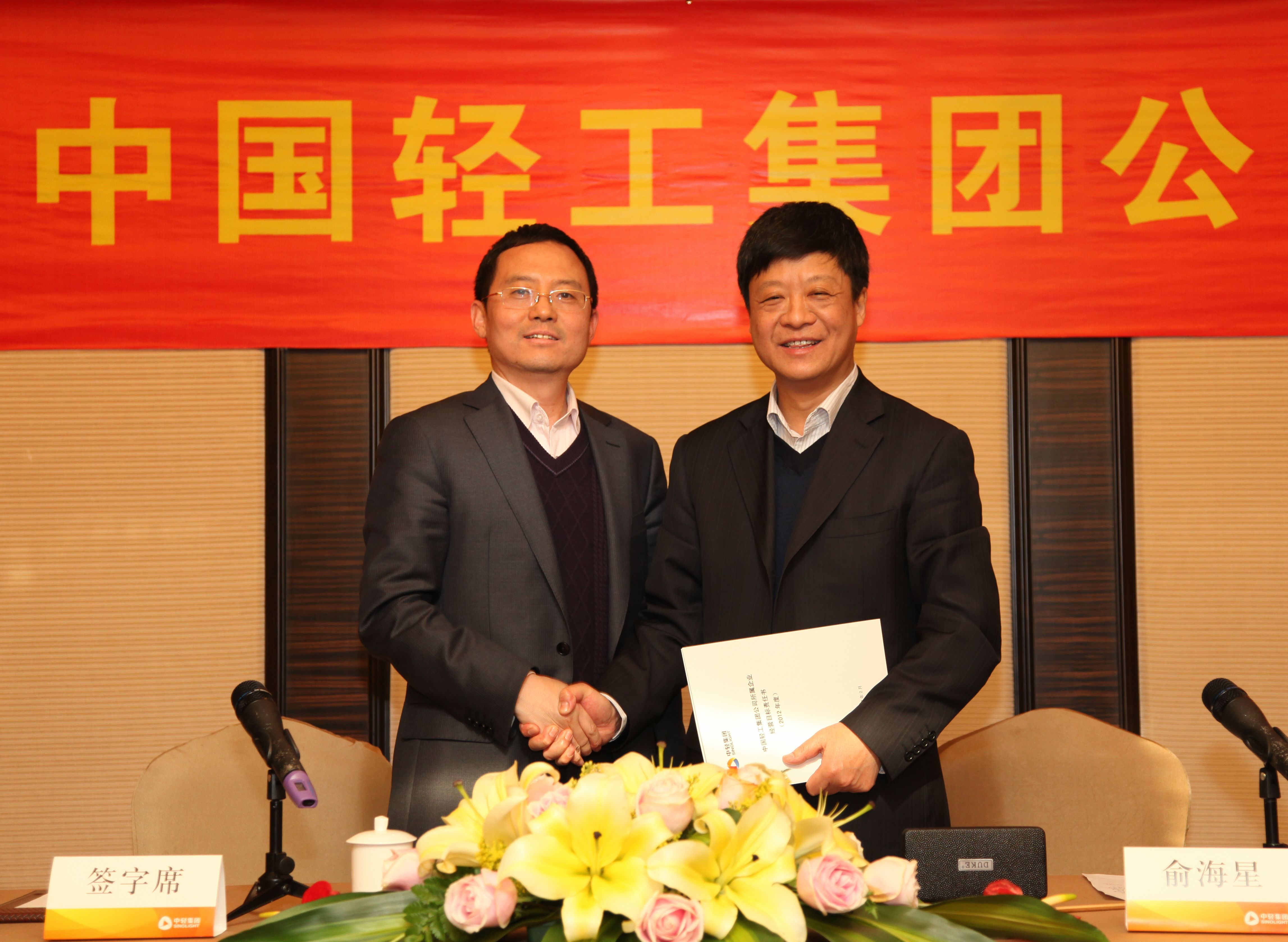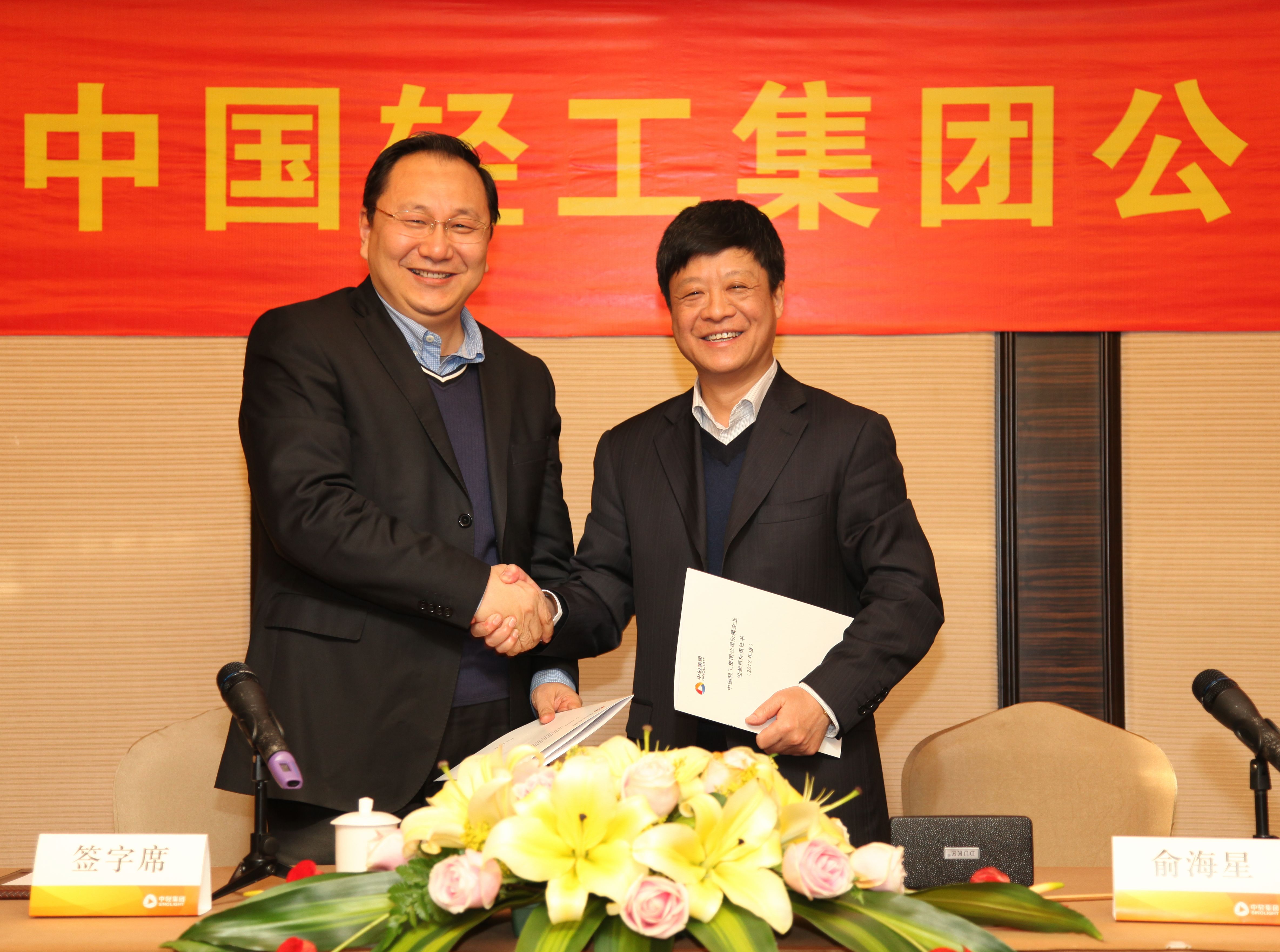俞海星总经理与中轻对外公司总经理王向阳签订责任书