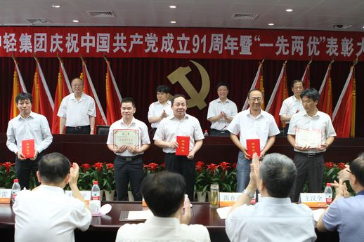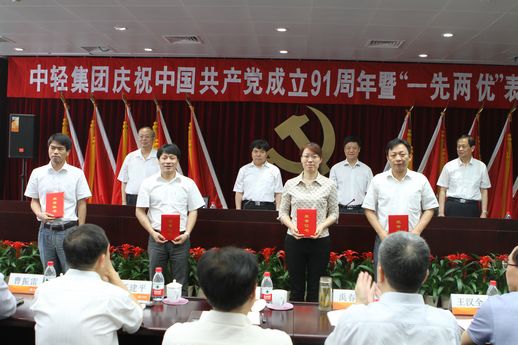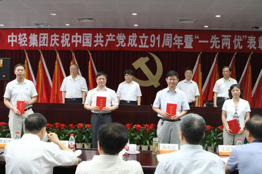 2012年6月29日下午,中轻集团庆祝中国共产党成立91周年暨“一先两优”表彰大会在集团公司新的总部办公大楼——中轻大厦隆重召开。会议隆重表彰了集团公司先进基层党组织、优秀共产党员、优秀党务工作者和集团公司2009-2011年度创建“四好”领导班子先进集体。集团公司党委书记、董事长陈鄂生在会上作了重要讲话。集团公司总经理俞海星主持会议。