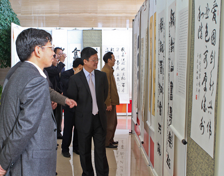 集团总经理俞海星等领导在观看书法作品