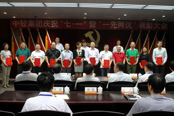 6月30日,中轻集团党委召开了庆“七一”暨“一先两优”表彰大会,隆重庆祝中国共产党成立93周年,表彰集团公司先进基层党组织、优秀共产党员和优秀党务工作者。中轻集团党委全体成员出席会议,董事长、党委书记陈鄂生作重要讲话,总经理、党委副书记俞海星宣读了《中轻集团党委关于表彰先进基层党组织、优秀共产党员、优秀党务工作者的决定》,党委副书记、纪委书记阎宝成主持会议。