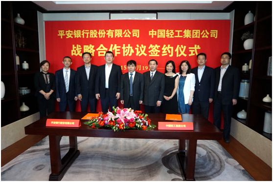 5月19日,中轻集团与平安银行北京分行战略合作框架协议签约仪式在北京丰融国际大厦举行。中轻集团董事长、党委书记陈鄂生与平安银行总行行长助理兼北京分行行长刘树云出席了签约仪式并代表各自企业签署了战略合作框架协议。集团公司总会计师郭建全、平安银行北京分行副行长韩玉贤等出席了签约仪式。