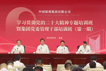 6月5日,保利集团学习贯彻党的二十大精神专题培训班暨集团党委管理干部培训班(第一期)在京开班。国务院国资委主题教育第八巡回指导组组长董长清一行莅临指导,集团公司党委书记、董事长刘化龙出席开班式作开班动员讲话,并讲授专题党课。活动由集团公司党委副书记张浩主持。