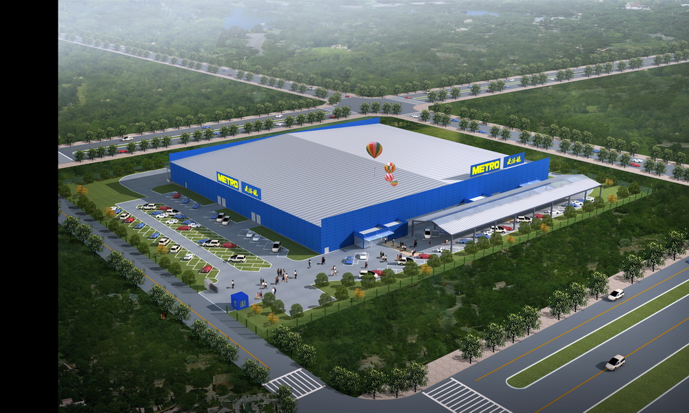 麦德龙长春净月商场由麦德龙集团公司在中国投资建设,属于大型仓储式会员制现购自运式商场。工程拟建在长春市彩宇大街,丙十路口。总建设用地24108m2,总建筑面积11264m2,其中商场建筑面积9968m2(主体一层,女儿墙顶标高10.60m,室内外高差从0.00到1.25m.建筑高度11.85米).停车位雨篷面积616m2,两个门卫共10.5m2。
